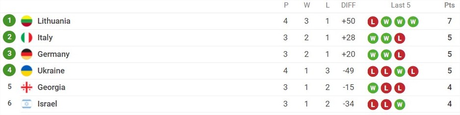 Litvanija u posljednjem kolu igra protiv Njemačke, a Ukrajina protiv Izraela.