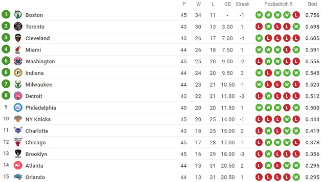 Tabela Istočne konferencije: