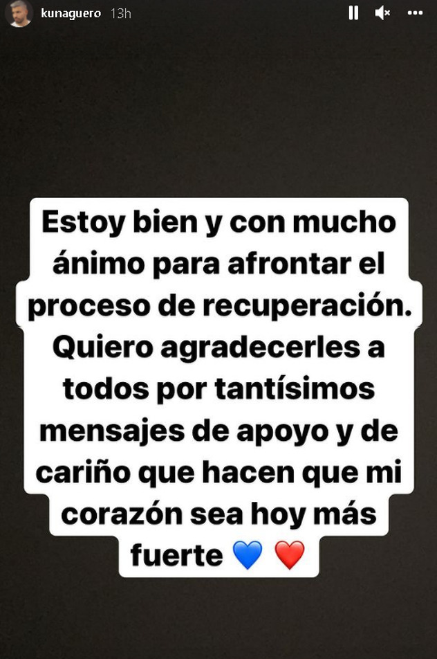 Nekoliko dana nakon utakmice Aguero se prvi put oglasio povodom problema koji ga je zadesio. Putem Instagram storyja poručio je da se osjeća dobro i da mu odgovaraju poruke podrške.