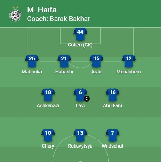 Domaća ekipa će igrati u veoma ofanzivnoj formaciji 4-3-3. Sastav Maccabija izgleda ovako: