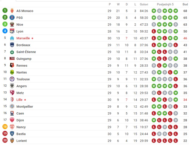 Metz je uprkos pobjedi ostao na 16. mjestu Ligue 1, dok je Bastia na pretposljednjoj poziciji.
