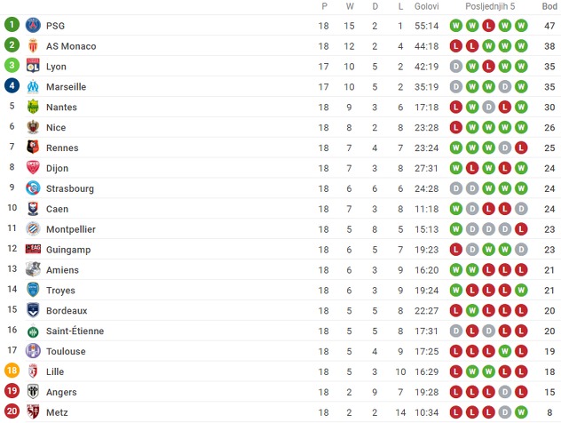 Nice se s osmom pobjedom u sezoni probila na šesto mjesto Ligue 1, dok je Bordeaux ostao na 15. poziciji.