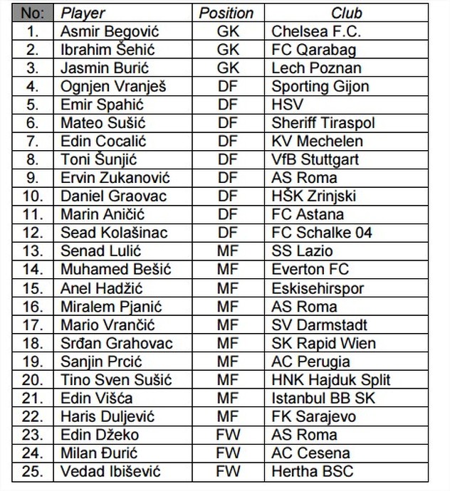 Senad Lulić Muhamed Bešić Anel Hadžić Miralem Pjanić Mario Vrančić Srđan Grahovac Sanjin Prcić Tino Sven Sušić Edin Višća Haris Duljević