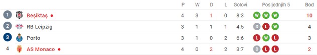 Bešiktaš je s desetim bodom ostao na prvom mjestu grupe G i na korak je do plasmana u osminu finala, dok je Monaco četvrtoplasirani s dva boda.