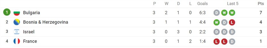 Bugarska se na taj način plasirala na Euro, a naši momci su propustili veliku šansu s obzirom da im je za odlazak na smotru najboljih evropskih selekcija bio dovoljan i neriješen rezultat nakon pobjede protiv Francuske i remija protiv Izraela.