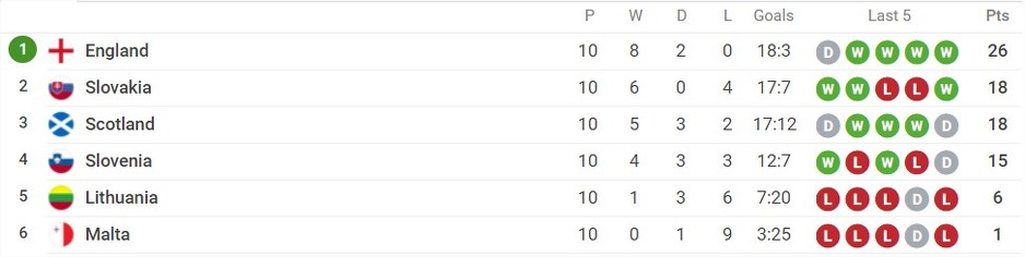 Slovačka - Malta 3:0 Slovenija - Škotska 2:2 Litvanija - Engleska 0:1