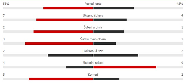 Naša reprezentacija je dominirala u svim statističkim parametrima. Imali su posjed lopte od 55 posto te uputili sedam udarac ka gostujućem golu, dok su Irci imali četiri šuta. Naša selekcija je izvela i pet kornera, dok je Sjeverna Irska imala dva.