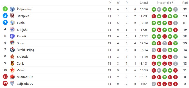 - nedjelja: Mladost - Sarajevo 0:3 Zrinjski - Široki Brijeg 1:3 Borac - Velež 3:1