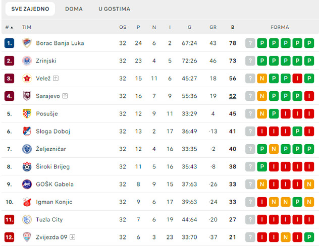 Borac na liderskoj poziciji sada ima nedostižnih pet bodova u odnosu na drugoplasirani Zrinjski uoči posljednje kola pa je moglo početi veliko slavlje. Igman je sezonu okončao na desetom mjestu i naredne godine će igrati u elitnom rangu bh. nogometa.