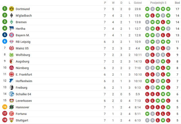 Borussia je s večerašnjom pobjedom prestigla Bayern i skočila na drugo mjesto Bundeslige s tri boda manje od lidera i imenjaka iz Dortmunda, dok je Bayern pao na petu poziciju.