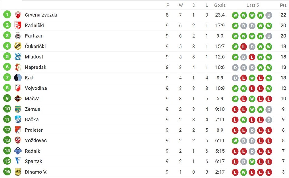 Crvena zvezda je ovim rezultatom zadržala prvo mjesto na tabeli sa dva boda više od Partizana i niškog Radničkog.