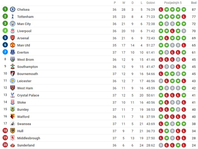 Crystal Palace je s novom pobjedom prestigao Stoke, Burnley i Watford i sada je na 13. mjestu Premiershipa, dok je Hull ostao na 18. poziciji te će naredne sezone zajedno s Middlesbroughom i Sunderlandom igrati Championship.