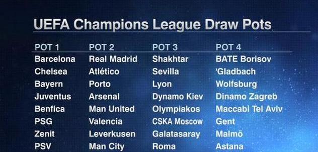 UEFA je podijelila klubove u četiri jakosne grupe, odnosno četiri šešira.