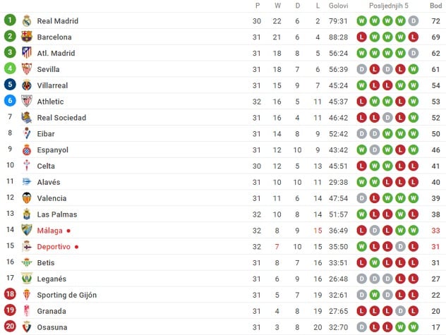 Deportivo je s novom pobjedom prestigao Betis i sada je na 15. mjestu La Lige, dok je Malaga poziciju iznad s dva boda više.