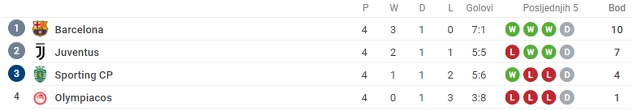 Olympiakos i Barcelona su podijelili bodove u Pireju odigravši meč bez pogodaka. Aktuelni trener Katalonaca Valverde svojedobno je vrlo uspješno vodio Grke pa je očekivano naišao na dobar prijem kod domaćih navijača. Barcelona je dominirala cijelim tokom meča, ali nisu uspjeli slomiti otpor domaćina pa su u Španiju otputovali samo s jednim osvojenim bodom.