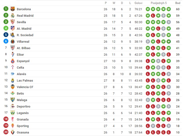 Valencia je nakon ove utakmice ostala na 13. mjestu La lige, dok je Sporting u opasnoj zoni na 19. poziciji.