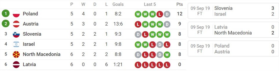 Sjeverna Makedonija je slavila u Latviji rezultatom 2:0 (Pandev 14., Bardhi 17.), dok je Slovenija kod kuće savladala Izrael rezultatom 3:2 (Verbič 43., 90., Bezjak 66. - Natcho 50., Zahavi 63.).