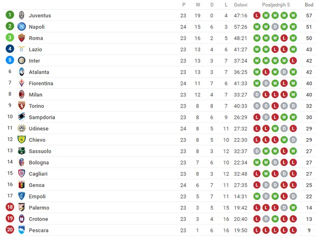 Domaći igrači dominirali su tokom cijelog meča, ali najveću šansu imali su tek u 41. minuti kada je Bernardeschi pogodio prečku.