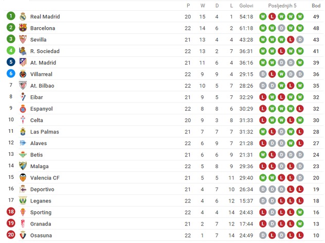 Gijon je s ova tri boda ostao i dalje na 18. mjestu La lige, ali sada sa samo dva boda zaostatka od zone opstanka koju predvodi upravo današnji protivnik, Leganes.