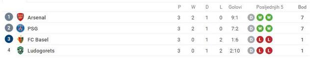 Paris Saint-Germain je golovima Di Marije (40'), Lucasa Moure (62') i Cavanija (92') pobijedio Basel (3:0) kod kuće i time opravdao ulogu favorita u ovom meču te zajedno sa Arsenalom stigao na prag plasmana u nokaut fazu takmičenja.
