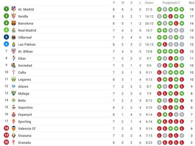 Granada i dalje ostaje zakovana za posljednje mjesto tabele sa svega dva osvojena boda i ukupno 20 primljenih golova u ovoj sezoni.