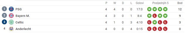 Oslabljeni Bayern je u Glasgowu savladao Celtic rezultatom 2:1. Uoči meča Bavarce su mučile povrede najboljih napadača, dok su Škoti imali problema s izostancima defanzivaca. Bayern je u vodstvo sredinom prvog poluvremena doveo Coman na asistenciju Ulreicha. McGregor je izjednačio u 74. minuti, a gotovo u sljedećem napadu Martinez je donio Bayernu sva tri boda. Bh. reprezentativac Jozo Šimunović nije nastupao za Celtic zbog povrede.