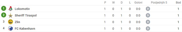 Zlin - Sheriff 0:0 Kopenhagen - Lokomotiv Moskva 0:0