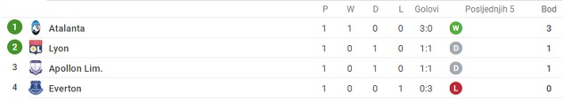Atalanta - Everton 3:0 Apollon - Lyon 1:1