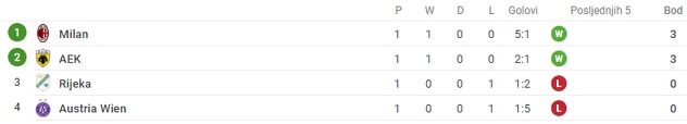 Rijeka - AEK 1:2 Austria Beč - Milan 1:5
