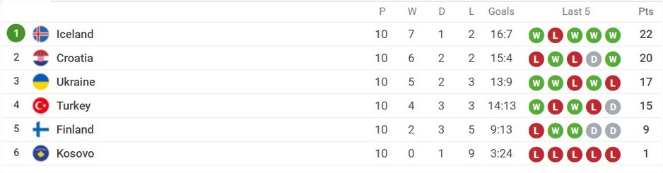 Ukrajina - Hrvatska 0:2 Island - Kosovo 2:0 Finska - Turska 2:2