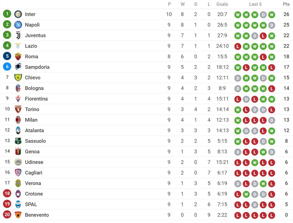 Susretom između intera i Sampdorije počelo je deseto kolo italijanske Serie A, a domaća ekipa je slavila rezultatom 3:2.
