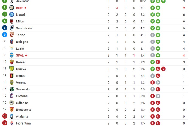 Inter je s novom pobjedom ostao na drugom mjestu Serie A s istim brojem bodova kao i lider Juventus, dok je SPAL pao na devetu poziciju.