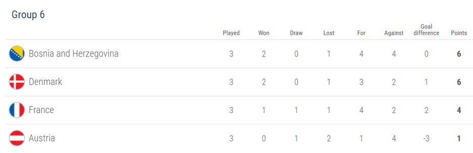 I drugoplasirana Danska je osigurala plasman na Euro budući da sigurno nije najgora drugoplasirana reprezentacija iz svih kvalifikacionih grupa, koja se jedino neće plasirati na završnicu.