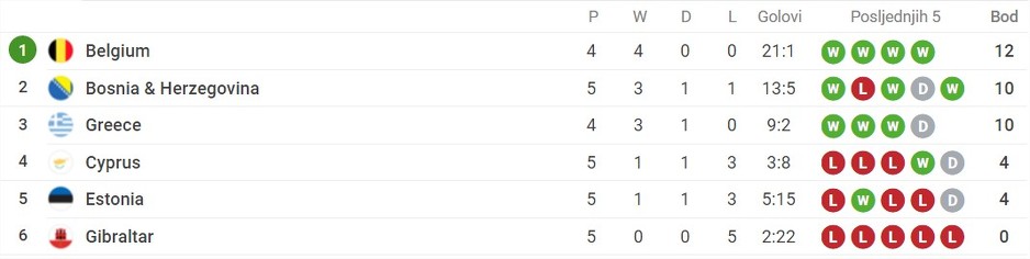Semafor je na kraju utakmice pokazivao 0:0. Obje selekcije imaju po četiri boda nakon pet odigranih utakmica.