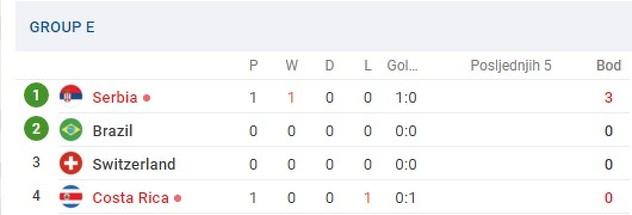 Pobjedom protiv Kostarike, Srbija je na sjajan način otvorila Svjetsko prvenstvo u Rusiji, te će imati veliku priliku da se plasiraju u drugi krug. U drugom meču ove grupe, Brazil će od 20:00 sati igrati protiv Švicarske.