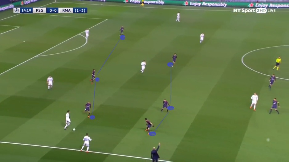 Cavani–Di Maria–Mbappe su vrhunski trojac, ali njih madridska zadnja četvorka Carvajal–Varane–Ramos–Marcelo kontroliše bez velike potrebe za pomoći iz veznog reda. Neymar bi na lijevoj strani tražio mnogo više koncetracije, mnogo bliže postavljanje beka, bližeg štopera i veznog, što bi otvaralo prostor na drugoj strani.