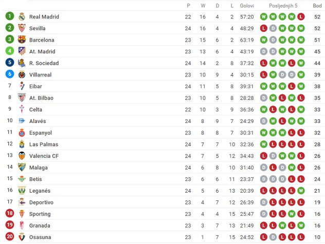 Eibar je ostao na sedmom mjestu sa 38 bodova, dok je Malaga trinaesta sa 26 osvojenih bodova.