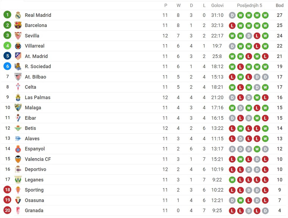 Sve do pred sam kraj susreta činilo se da će bodovi ostati na Riazoru, a onda je najprije Vitolo u 87. minuti pogodio za 2:2, a pobjedonosni gol za Sevillu postavio je Mercado u 90+2. minuti susreta za 3:2.