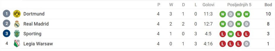 Ekipa iz Dortmunda, iako desetkovana povredama, uspjela je savladati Sporting i obezbijediti plasman u osminu finala Lige prvaka. U 12. minuti Ginter je ubacio loptu, a Ramos glavom pogađa gornji desni ugao Rui Patricijevog gola. Dortmund je mogao povesti sa 2:0 u 34. minuti, no Pulišić je zatresao samo prečku. U drugom poluvremenu domaćin je kontrolisao igru i zasluženo slavio.