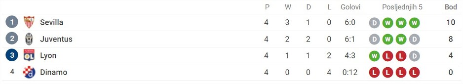 Juventus je ponovo podijelio bodove sa Lyonom (1:1), a ovaj put kod kuće i sada je na drugom mjestu iza Seville.