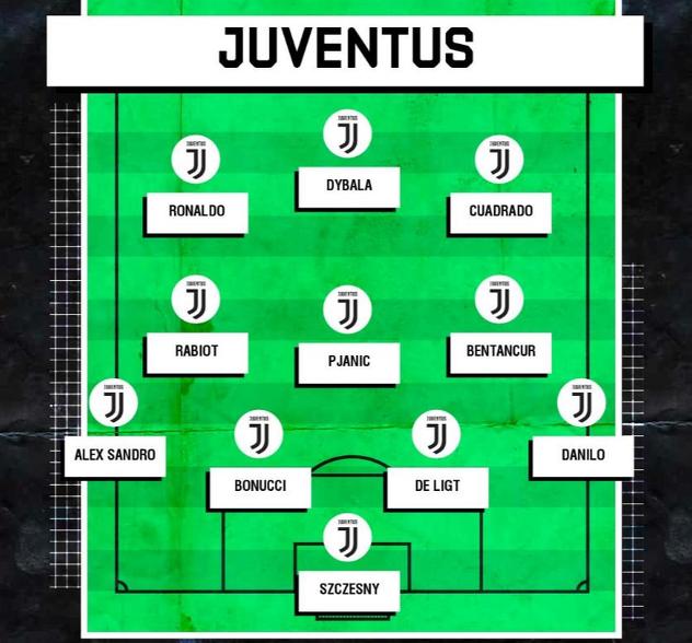 S druge strane, trener Juventusa Maurizio Sarri priliku je od prve minute dao Miralemu Pjaniću. Juventus: Szczesny; Danilo, Bonucci, De Ligt, Alex Sandro; Bentancur, Pjanić, Rabiot; Cuadrado, Dybala, Cristiano Ronaldo.