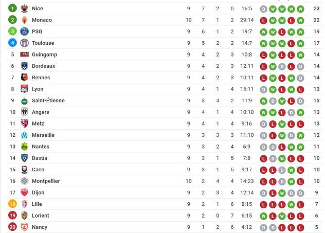 Monaco je drugi na tabeli sa 22 boda, dok je Montpellier 16. sa 10 bodova.
