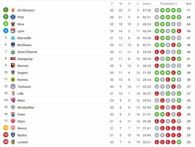 Ovim trijumfom Lille je probio na 13. mjesto uz utakmicu više, dok je Bastia pretposljednja sa 25 osvojenih bodova.