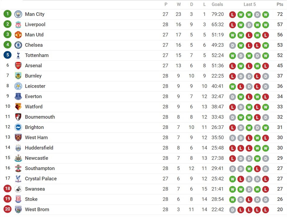 Bournemouth - Newcastle 2:2 Brighton - Swansea 4:1 Burnley - Southampton 1:1 Liverpool - West Ham 4:1 WBA - Huddersfield 1:2 Watford - Everton 1:0