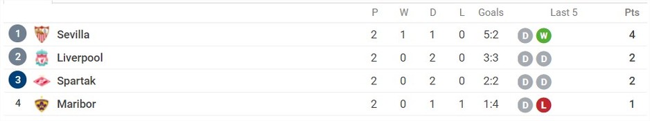 Liverpool je kiksao i sa gostovanja u Moskvi donio samo bod. Spartak je poveo u 23. minuti kada je Fernando iz slobodnog udarca postigao eurogol. Radost domaće ekipe je trajala samo osam minuta. Coutinho i Mane su u 31. minuti odigrali dupli pas, a Brazilac je rutinski matirao Rebrova za 1:1.