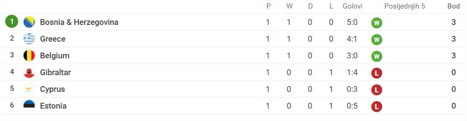 Parovi drugog kola (7. oktobar): Belgija - BiH, Grčka - Kipar, Estonija - Gibraltar.