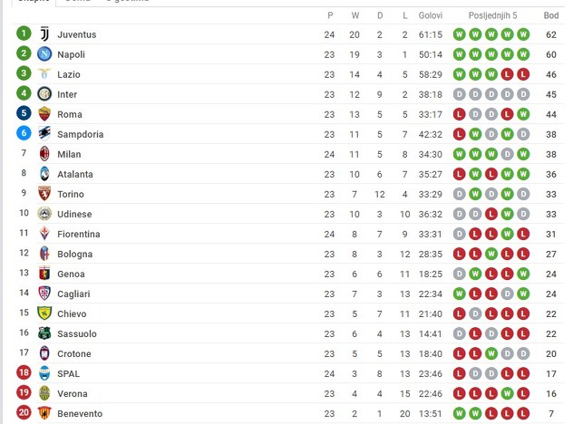 Ovom pobjedom, Milan je preskočio Atalantu na tabeli i sada zauzima sedmu poziciju sa 38 osvojenih bodova, isto kao i Sampdorija koja se nalazi na šestom mjestu. S druge strane, SPAL je ostao u zoni ispadanja i nalazi se na 17 mjestu.