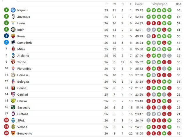 Sampdorija je na svom terenu rezultatom 2:0 savladala Udinese. Domaći su u 35. minuti pogotkom Silvestrea stigli u vodstvo, a pitanje pobjednika odlučeno je u 85. minuti kada Zapata postiže pogodak za 2:0. Gosti su do kraja uspjeli samo smanjiti rezultat zahvaljujući autogolu Silvestrea.