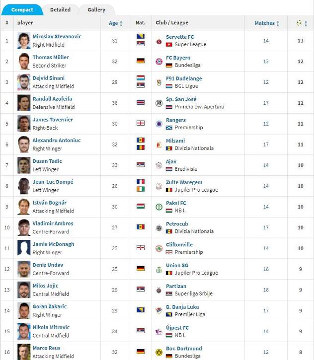 Stevanović je prestigao Thomas Müllera (Bayern), Dejvida Sinanija (Dudelange) i Randalla Azofeifa (Sporting San Jose) koji su u njemačkoj, luksemburškoj i kostarikanskoj ligi upisali po 12 asistencija.