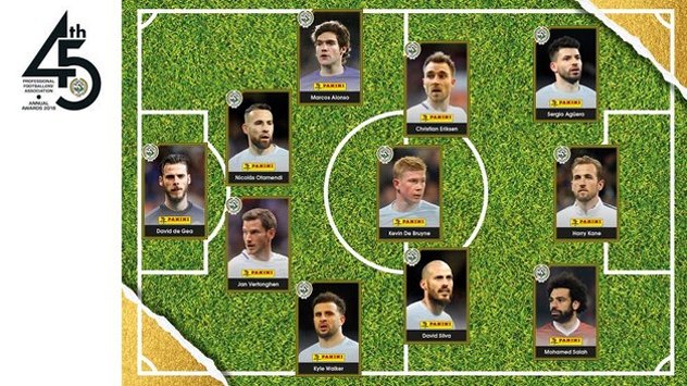 Uz njega su u idealni tim Premiershipa izabrani David de Gea (Manchester United), Kyle Walker (Manchester City), Jan Vertonghen (Tottenham Hotspur), Nicolas Otamendi (Manchester City), Marcos Alonso (Chelsea), David Silva (Manchester City), Kevin De Bruyne (Manchester City), Christian Eriksen (Tottenham Hotspur), Harry Kane (Tottenham Hotspur) i Sergio Agüero (Manchester City).